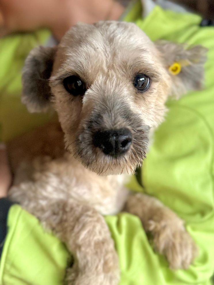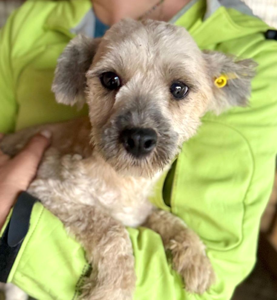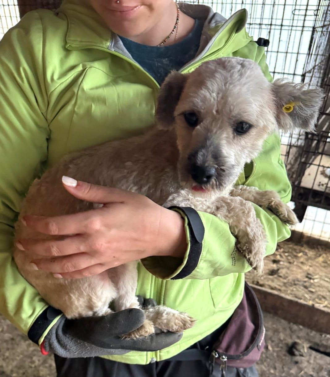 Die kleine Hündin IMOGEN, die äußerlich an einen Terrier erinnert, zeigte sich bei unserem Besuch zunächst etwas zurückhaltend. Sie beobachtete das Geschehen vorsichtig aus der Ferne und wartete ruhig ab, ohne sich in den Vordergrund zu drängen.
