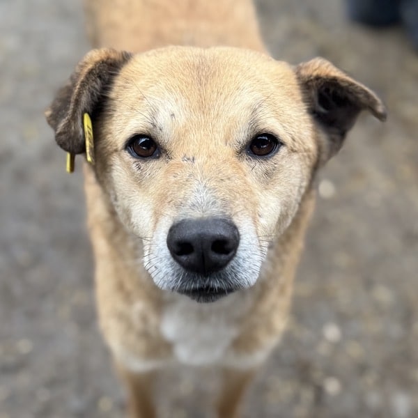 ISLAY wartete geduldig in der zweiten Reihe, während wir uns mit den aktiveren Hunden des Kennel beschäftigen. Als wir uns ihm zuwandten, nahm er gerne unsere Leckerchen aus der Hand. Für mehr fehlte ihm der Mut und er wich zurück. In einer anderen Umgebung mit verständnisvollen Menschen sollte dieser letzte Schritt des fehlenden Vertrauens bald überwunden sein.