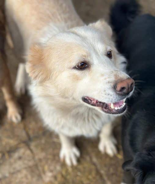Die hübsche IVORY mit dem tollen, flauschig-weichen Eisbärfell zeigte sich bei unserem Besuch freundlich und interessiert. Aufgrund ihrer Beschreibung haben wir sie zu keiner Zeit bedrängt, sondern sie stets selbst die Nähe zu uns suchen lassen, was sie auch tat. Gern ließ sie sich streicheln und genoss den kurzen Moment der Zuwendung im sonst so tristen Shelter-Alltag. Für die tolle IVORY, der ihr rechtes Ohr fehlt, suchen wir erfahrene und liebevolle Menschen, die ihre Hundesprache zu verstehen wissen und sie für ihren Charakter lieben. Ihre niedliche kurze Rute wedelte unentwegt und sie zeigte sich souverän und verträglich im Umgang mit den anderen Hunden. So sehr wünschen wir uns für die niedliche IVORY, dass sie schon bald auf der Sonnenseite ein glückliches Hundeleben in Geborgenheit führen darf.