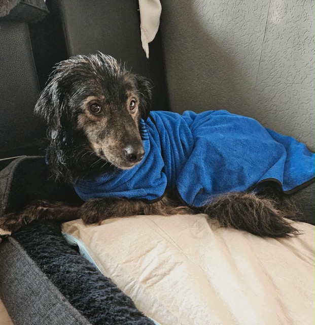Im Juli 2025 kam er dann endlich auf eine Pflegestelle. Seitdem geht es langsam, aber stetig bergauf. Jascha war von Anfang an anfassbar, nicht panisch, nicht flüchtend, war aber mit vielen Dingen überfordert, wirkte teilweise wirklich resigniert. Er brauchte halt ein wenig Zeit.
