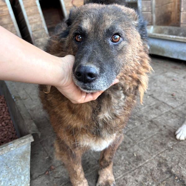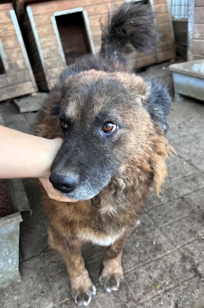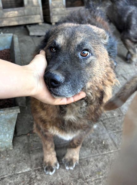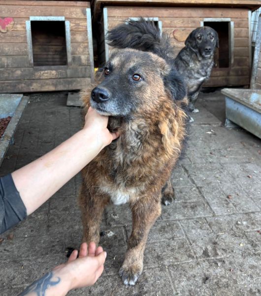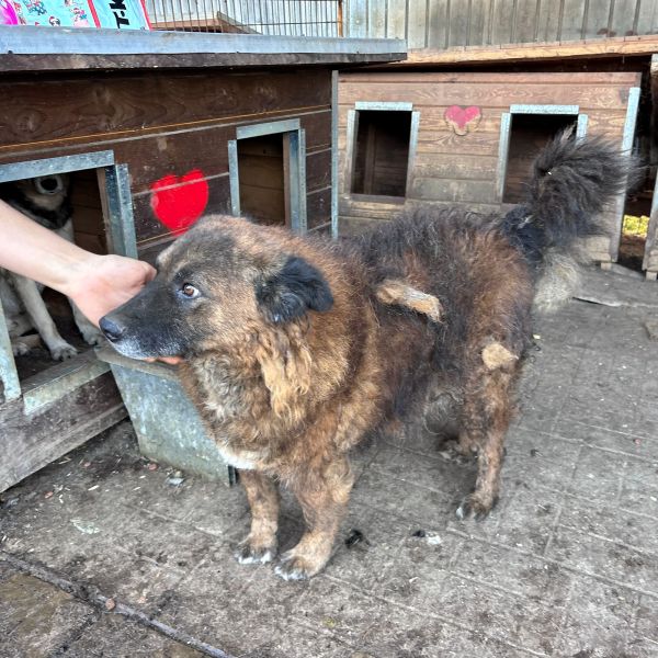 Dieser süße Rüde ist neu im Shelter und hielt sich während unseres Besuchs zunächst lieber im Hintergrund. Jaspar ließ den aufgeweckten Hunden den Vortritt – auf Trubel und Hektik kann er anscheinend gut und gern verzichten. Als wir uns ihm schließlich zuwandten, zeigte Jaspar sich als ganz sanfter Hundemann, der sich nach Zuwendung und Geborgenheit sehnt. Mit glänzenden Äuglein blickte er uns an und genoss den Moment der seltenen Zuwendung. Sein tolles Fell ist stellenweise verfilzt und sehr dicht – er ließ sich sogar liebevoll von einem anderen Rüden putzen. Einiges an Filz konnten wir abschneiden, doch die kommende, nass-kalte Jahreszeit wird vermutlich hart für Jaspar, weshalb wir ihm sehr wünschen, dass er rasch gesehen wird und den Winter gebürstet und in einem warmen Körbchen verbringen darf. Mit seinem angenehmen Wesen hat er uns sehr berührt. In seiner gemischten Gruppe, welche neu zusammengesetzt wurde, zeigte Jaspar sich ausgesprochen verträglich.