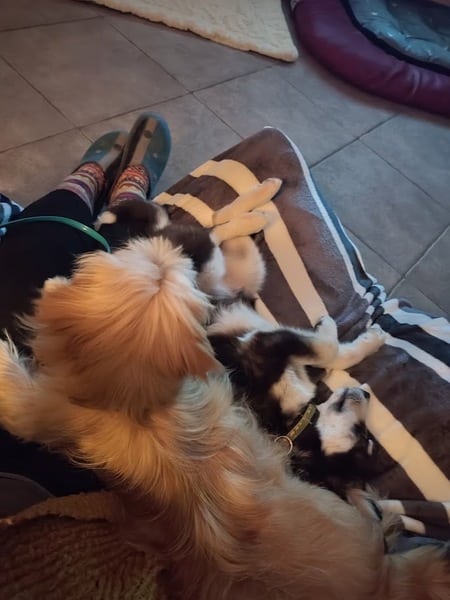 Sie lebt hier in einem Hündinnenrudel und die anfänglichen Neidereien bei Futter und Mensch (vermutlich Überbleibsel aus der Shelterzeit) sind hier kein Thema mehr und mit verständiger Begleitung gut zu lenken. Inzwischen liegt sie auch gemeinsam mit ihren PS-Geschwistern beim Pflegefrauchen. Sie ist eine sehr liebevolle Hündin, mag den engen Kontakt zum Menschen, bittet pfötelnd um Aufmerksamkeit und Streicheleinheiten, ohne dabei aufdringlich zu sein. Sie kann sich auch genauso gut ruhig irgendwo ablegen und wartet einfach darauf, dass es wieder Zeit ist für Aktion. Im Home Office benimmt sie sich vorbildlich.
