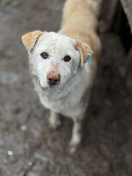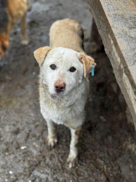 JOHANN hat sich positiv entwickelt. Er ist ein offener und freundlicher Rüde, der diesmal neugierig auf unsere Leckerlies war. Diese nahm er aus der Hand, dabei konnten wir ihn an der Schnauze berühren. Da es leider völlig ungewohnt für ihn ist, wich er uns aus und war skeptisch, allerdings weiterhin neugierig. Aufgrund eines anderen futterneidischen Rüden im Kennel konnten wir ihn nicht weiter mit Leckerlies locken. Johann braucht erfahrende Menschen, die ihm zeigen, dass man ihnen vertrauen kann. In seinem gemischten Rudel zeigt er sich verträglich.
