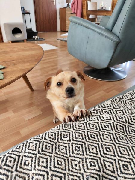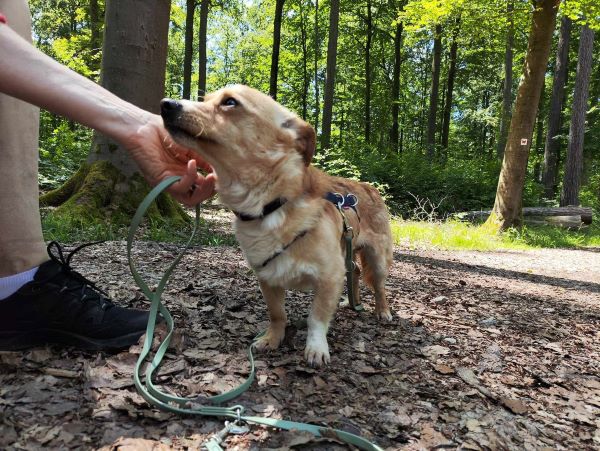 Er hat ein angenehmes, eher ruhiges Temperamt. Insgesamt einfach ein sehr nettes Hundchen.