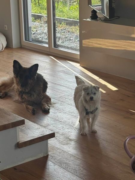 Mit Kindern versteht JOSEFINE sich ebenfalls gut, auch wenn sie sehr laut sind, stört sie das so gar nicht. Sie läuft schon sehr gut an der Leine, jedoch muss an der Stubenreinheit noch ein wenig gearbeitet werden. Hat sie freien Zugang zu einem ausbruchssicheren Garten, erledigt sie ihr Geschäft aber konsequent draußen . Das Alleine bleiben muss sie noch lernen und sollte im neuen Zuhause mit ihr kleinschrittig aufgebaut werden.