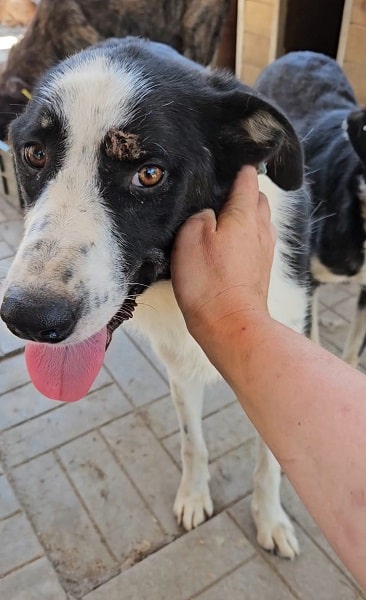 JOSUA’s Bisswunde ist weiterhin am Abheilen, aber immer noch deutlich sichtbar. JOSUA freute sich sehr, als wir ihn besuchten und wartete geduldig ab, während wir uns mit den anderen Hunden beschäftigten. Als wir uns ihm zuwandten, konnten wir ihn gut streicheln und er zeigte uns auf eine sanfte Art, dass er gerne noch mehr Streicheleinheiten hätte. JOSUA hat ein angenehmes Temperament und wäre sicher ein toller Begleiter. Hoffentlich wird er bald gesehen.