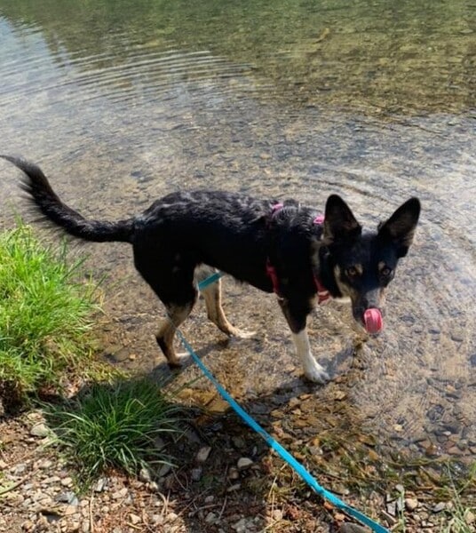 Fremden Hunden begegnet sie zunächst misstrauisch; ob sie sie mag oder nicht, entscheidet sich situativ. Begleitet man ein Kennenlernen gut und ruhig, ist es später auch kein Thema mehr. Mit ihren bekannten Hundefreunden hat sie ein gutes Sozialverhalten und sie spielt und rennt ausgelassen mit ihnen und ist sehr verträglich. Sie mag Bällchen-Spiele, am liebsten mit ihrem Menschen, kann sich aber auch alleine beschäftigen. Ansonsten ist sie ein Laufhund, ihre langen Beine mögen sich rasch bewegen, lang ausholen, rennen, dass der Wind ihr durchs Fell fährt. Dann ist sie in ihrem Element. Sie mag am Fahrrad laufen. Hier sollte sie aber selber das Tempo vorgeben dürfen und Mensch muss es natürlich in Maßen halten. Ansonsten braucht sie auch wieder mehr Kontakt zu Artgenossen, ohne Leine laufen, Hundesprache verstehen.