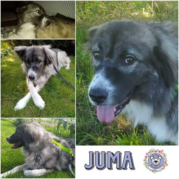 Juma ist eine zurückhaltende, freundliche, ruhige Hündin. Sie begegnet unbekannten Menschen vorsichtig, bei vertrauten Menschen ist sie sehr verschmust. Sie mag es ruhig und geordnet, hat gerne Routinen und ein ruhiges Plätzchen. Juma ist sehr clever, die Grundkommandos (Rückruf, Sitz, Hinlegen, an der Leine gehen) kann sie schon gut.