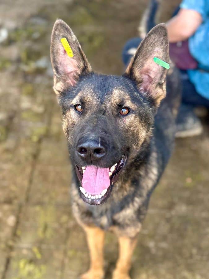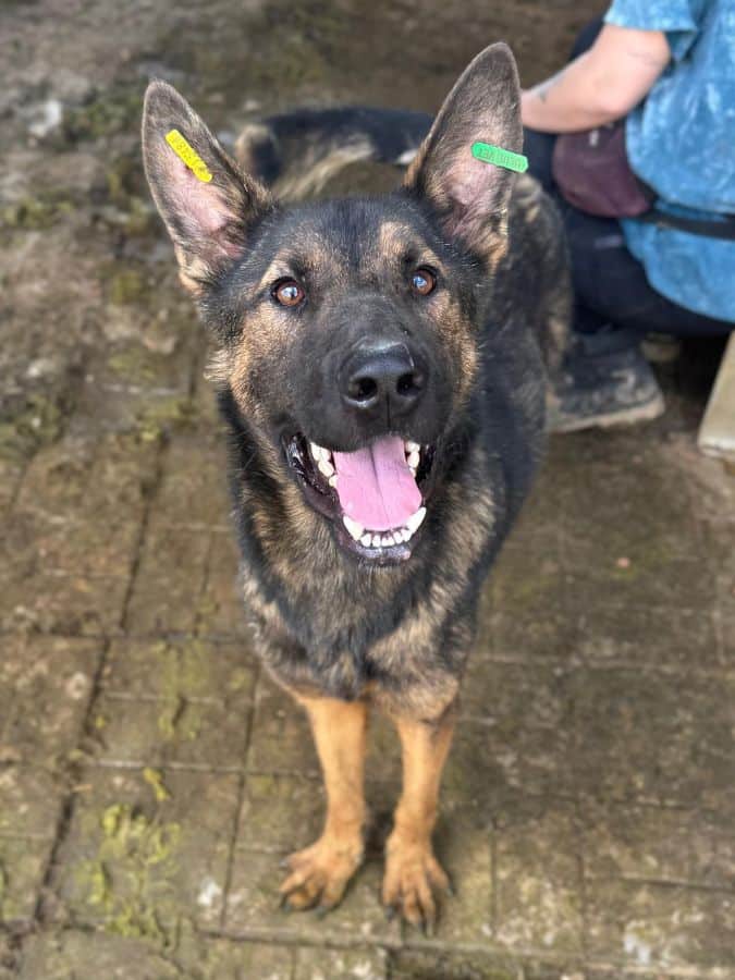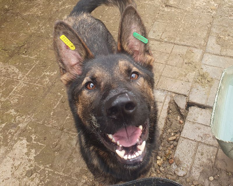 JUMPY ist noch ein recht junger Rüde, der vor Kurzem in Bucov gelandet ist. Beim kurzen Besuch vor Ort zeigte er sich sehr freundlich und aufgeschlossen. Schäferhund-typisch ist er stark auf Menschen bezogen und genoss jede Aufmerksamkeit sichtlich. Trotz seiner Freude über den Besuch konnte er nach kurzer Zeit gut zur Ruhe kommen. Er legte sich entspannt vor uns auf den Boden und nahm die Streicheleinheiten dankbar an.