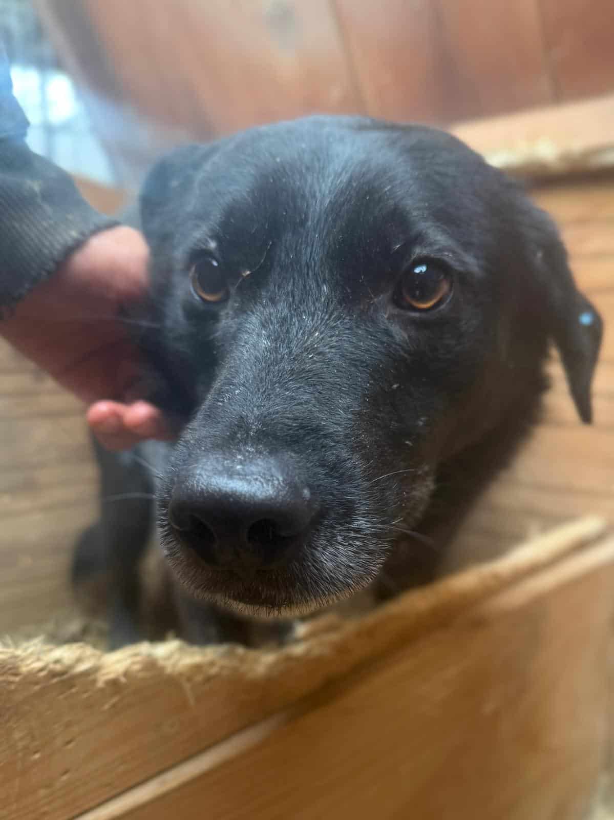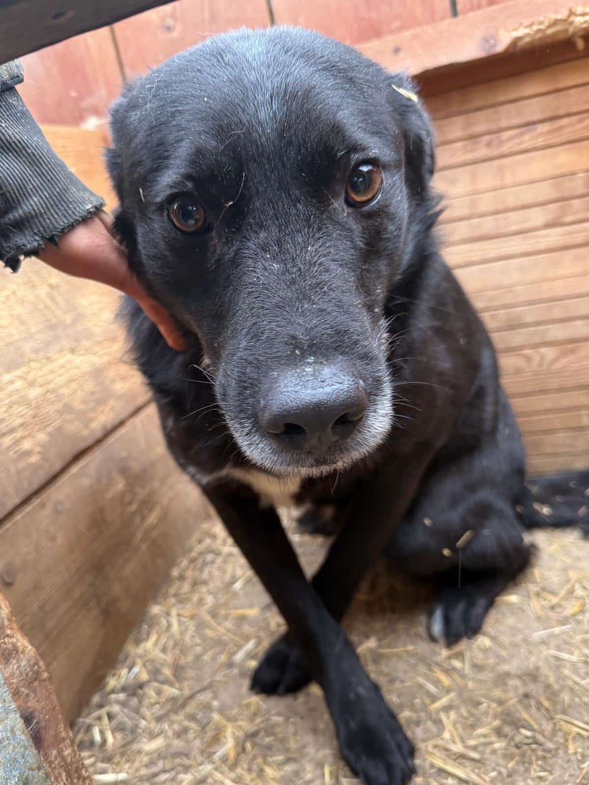 Er verhielt sich uns gegenüber unsicher, was aber auch seiner Situation geschuldet sein könnte. Wir konnten ihn in der Hütte dennoch problemlos anfassen und streicheln und auch seine Zähne kontrollieren. Er zeigte dabei keinerlei Abwehrverhalten. Aus der Hütte wollte er nur höchst widerwillig gehen, weil er dabei jederzeit mit einem Angriff zu rechnen hat. Zu dünn ist er nicht, er scheint also ans Futter zu kommen, aber dennoch ist sein Leben in dieser Konstellation noch viel schwerer, als es in Bucov ohnehin schon ist, und wir hoffen, dass er bald einen Platz findet.