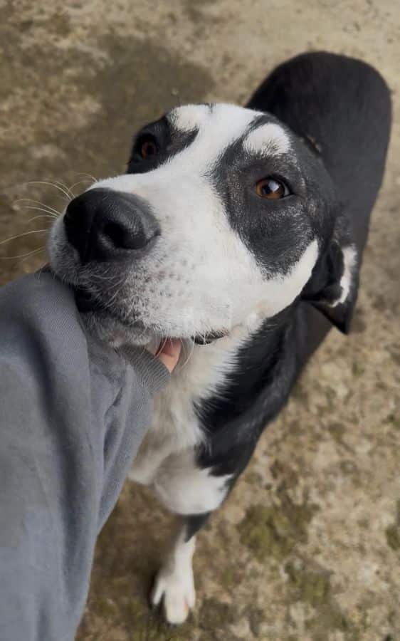 KAIKAS wartet schon seit über einem Jahr im rumänischen Shelter. Dabei ist er so zutraulich, lässt sich überall problemlos anfassen und begegnet Menschen offen und freundlich. Anfangs zeigt er sich manchmal etwas stürmisch, freut sich einfach über Aufmerksamkeit, doch er ist bereit zu lernen. Unsere Korrekturen nimmt er gut an, auch wenn ihn klare Kommunikation manchmal noch ein wenig verunsichert. Man merkt ihm an, dass er komplett unausgelastet ist. Aktuell lebt er in einem dynamischen, gemischten Rudel mit mehreren Hunden, das während unserer Anwesenheit recht lebhaft war. Grundsätzlich kommt er mit seinen Artgenossen gut zurecht und zeigt sich sozial.