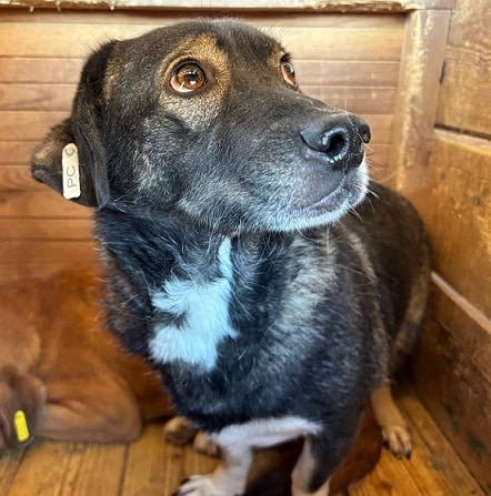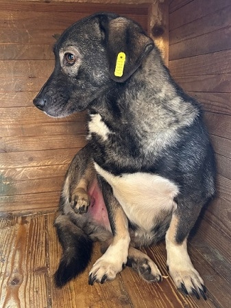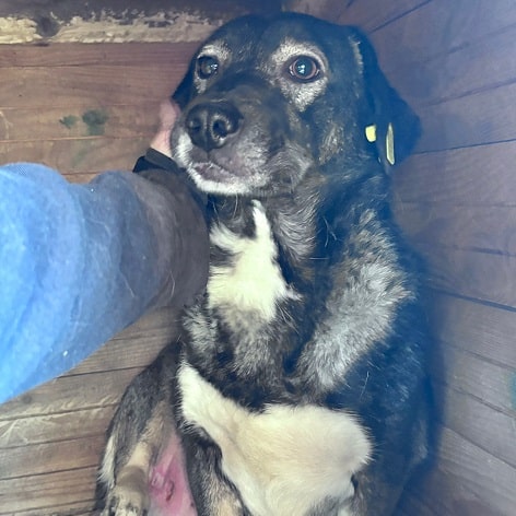 Er wird von einem jüngeren und dominanteren Rüden im Kennel eingeschränkt, weswegen wir ihn nur in der Hütte erfasst haben, um ihm diesen Stress außerhalb zu ersparen.
