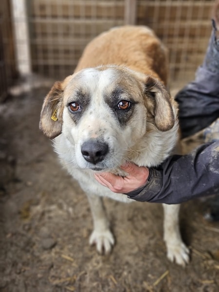 Karya eine wunderschöne hellbraun/ weiße Hündin mit schwarz umrandeten Augen war einfach nur freundlich, nicht aufdringlich und freute sich über die Leckerchen. Auch verträglich zeigte sie sich in ihrem Kennel. Wann wird sie nur gesehen und darf das Shelter hinter sich lassen? Wir wünschen es ihr so sehr.