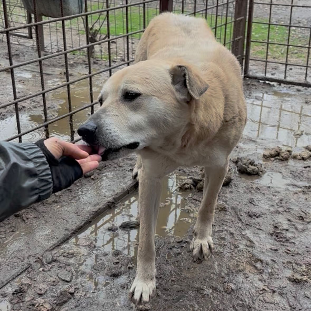 KASIO sitzt seitdem er ein Welpe war in Bucov. 5 Jahre ist er nun und hat noch nie etwas von der Welt da draußen sehen dürfen. Er ist trotzdem sehr interessiert an Menschen und war sofort bei uns, als wir den Kennel betraten. Leckerlis nimmt er gerne und sanft aus der Hand, er lässt sich dabei auch vorsichtig an der Schnauze berühren, weicht dann aber zurück, wenn man ihn anfassen möchte. Wir haben ihn als freundlichen, gut verträglichen Rüden kennengelernt, der aufgrund seiner fehlenden Erfahrung mit Menschen einfach etwas unsicher ist.