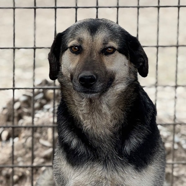 Fast 1,5 Jahre blieb diese süße Maus völlig unentdeckt. Eine große Narbe am linken hinteren Bein lässt vermuten, dass sie mal in eine Falle geraten ist. X ist eine sehr interessierte junge Hündin, die sich uns gegenüber von Anfang an sehr neugierig und freundlich zeigte. Sie nahm gerne unsere mitgebrachten Leckerlie direkt aus der Hand, nachdem ihr Kennelgenosse MINOSCH ihr zeigte, dass wir ihr nichts tun. Auch vorsichtig an der Schnauze berühren konnten wir sie. Mehr war in dieser kurzen Zeit leider nicht möglich. In ihrem Kennel lebt sie aktuell nur mit einem Rüden zusammen, dies scheint gut zu klappen. Wir wünschen uns sehr, dass diese freundliche Hündin schon bald die Chance auf ein Leben außerhalb des Shelters erhält. Ein souveräner Ersthund wäre ihr bei der Eingewöhnung sicher eine große Stütze.