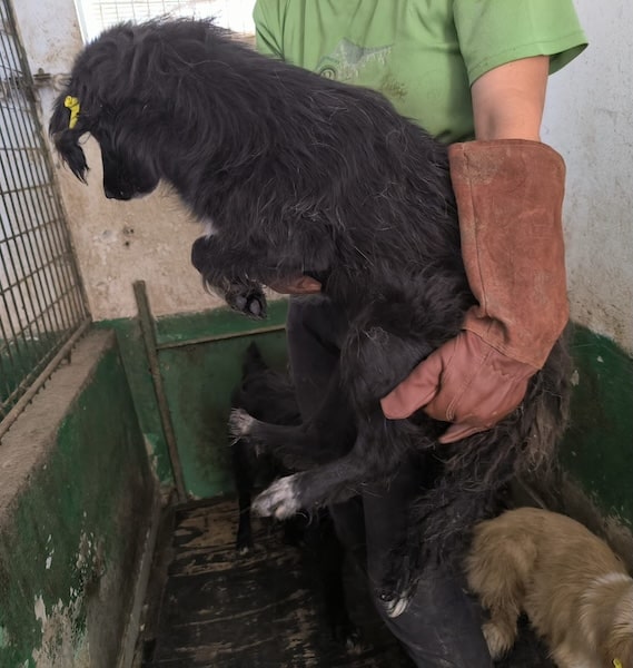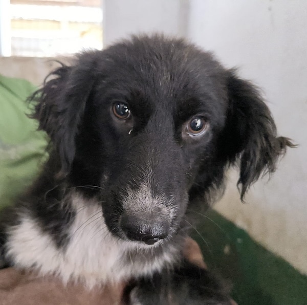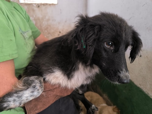 KATLEEN lebt zusammen mit einem Rüden und einer Hündin in dem engen Vetkennel. Dort scheint sie verträglich zu sein.