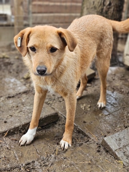 KAYA ist eine zarte und hübsche Hündin, die Leckerlis behutsam aus der Hand nimmt. Sie wäre gerne mutiger, traut sich jedoch noch nicht ganz. Während unseres Besuchs blieb sie in unserer Nähe, beobachtete interessiert das Geschehen und suchte immer wieder vorsichtig den Kontakt. Sie orientiert sich an einer mutigeren Hündin und gewinnt dadurch Sicherheit. Ein Hundefreund im neuen Zuhause würde ihr die Eingewöhnung im neuen Zuhause daher sicher erleichtern. Im Kennel zeigt sich KAYA zudem verträglich mit den anderen Hunden. Mit Geduld, Ruhe und einfühlsamer Begleitung würde sie Schritt für Schritt an Sicherheit gewinnen und sich zu einer tollen Begleiterin entwickeln.