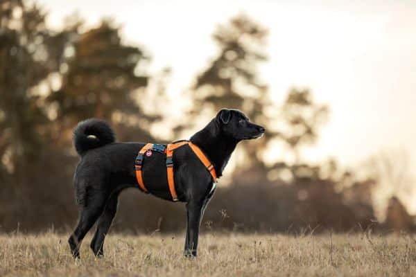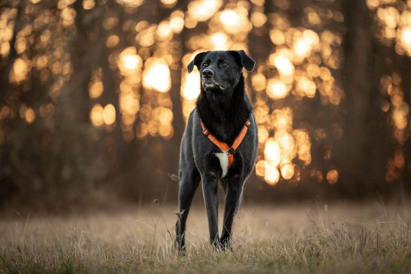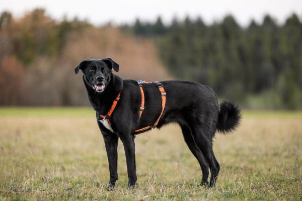 Das An- und Ausziehen von Halsband, Leine und Sicherheitsgeschirr bereitet Kelda keine Probleme. An der Leine läuft Kelda gut und sucht regelmäßig den Augenkontakt zu ihrer Bezugsperson.