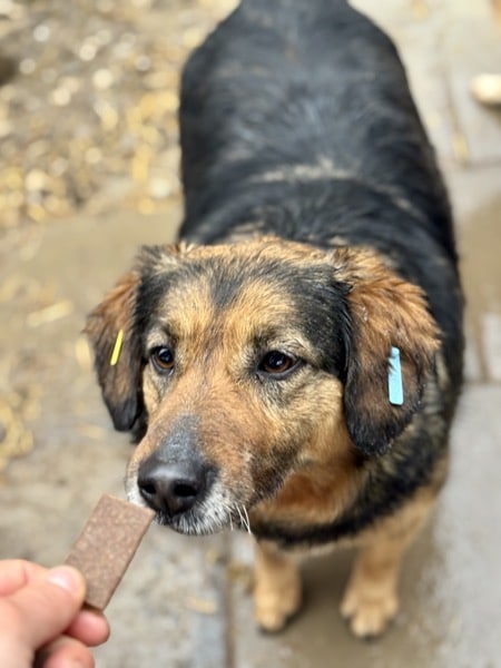 Eine etwas zurückhaltende Hündin, die sich aber mit der Zeit immer mehr an uns heran traute. Neugierig beobachtete sie das Geschehen und kam immer ein Stück näher. So gerne würde sie sich mehr trauen, ist den Kontakt mit uns Menschen aber noch nicht so gewohnt.