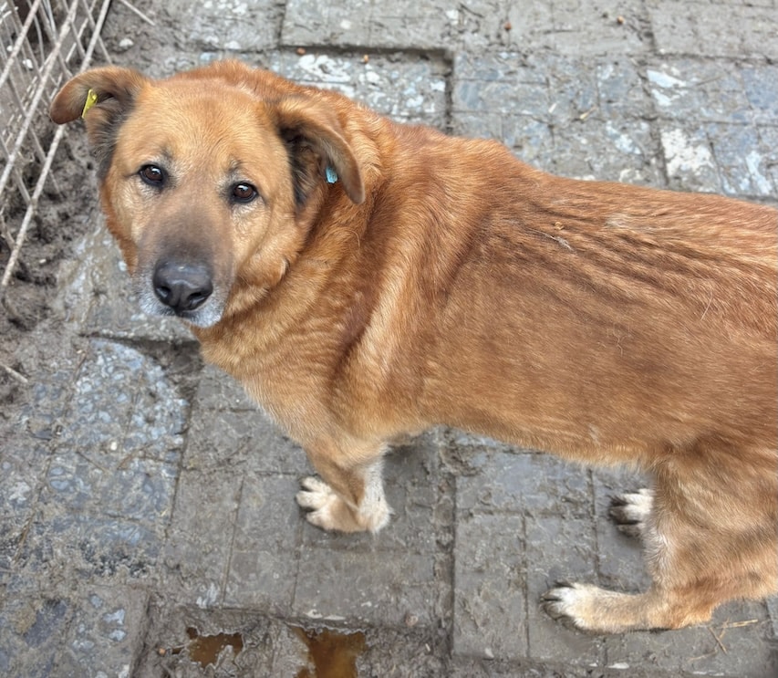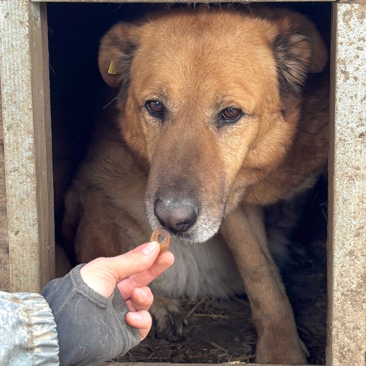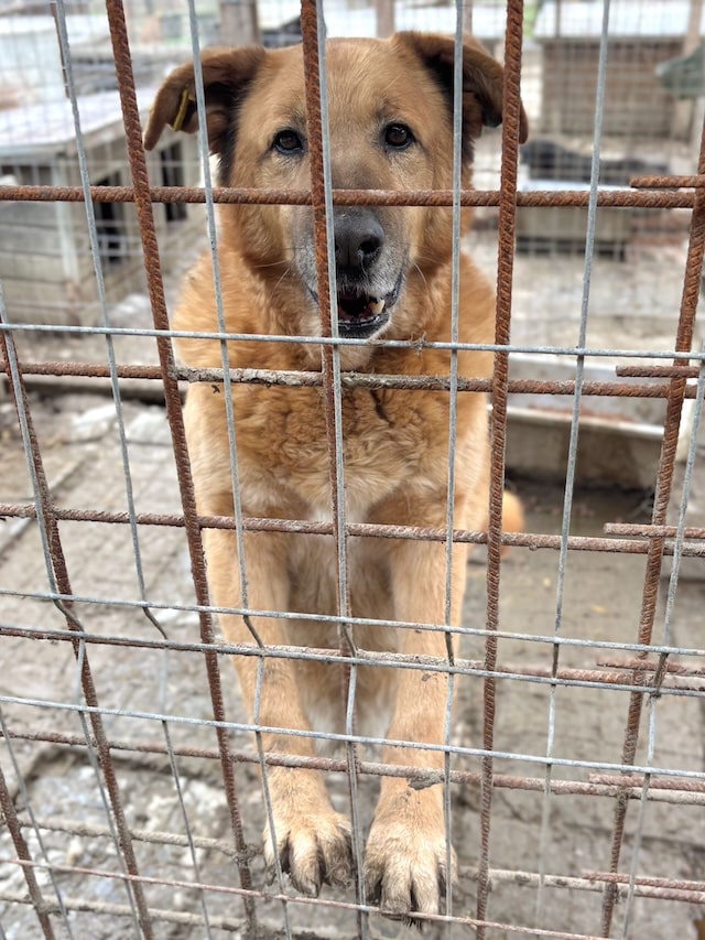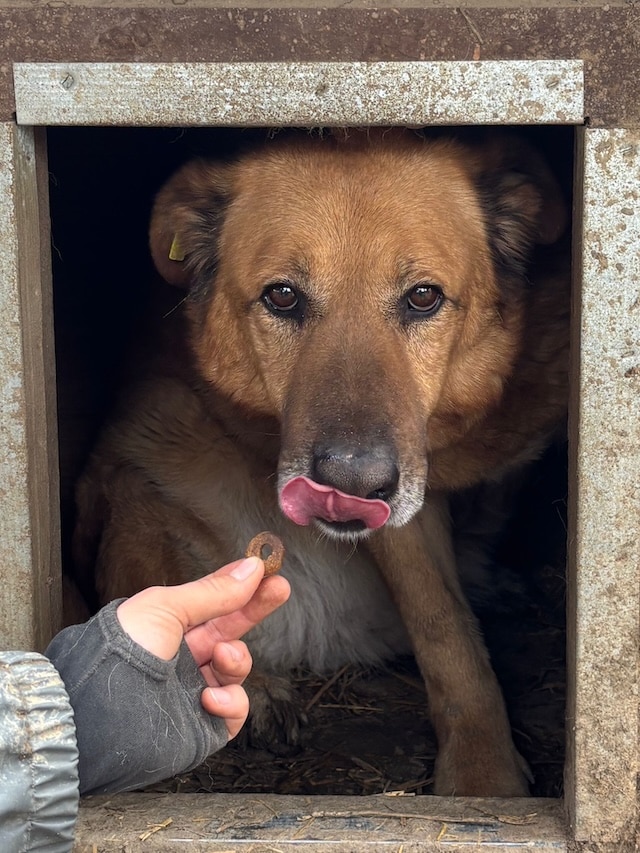 Seit nun 4 langen Jahren hofft unser hübscher KIMANO bereits vergeblich im riesigen Shelter auf seine Chance. Als wir vor seinem Kennel standen, kam er sehnsüchtig ans Gitter, stellte sich auf die Hinterbeine und winselte nach Aufmerksamkeit. Als wir den Kennel betraten, verzog KIMANO sich hingegen in seine Hütte und kam nicht mehr heraus. Die mitgebrachten Leckerlie nahm er gern – doch für mehr Nähe fehlt ihm einfach die Erfahrung im Umgang mit uns. Der direkte Kontakt – ohne Gitter – ist ihm einfach nicht geheuer, da er es nicht kennt. In all der Zeit an diesem trostlosen Ort hatte er nie wirklich die Chance, zu lernen, was Vertrauen und Zuwendung sind. Daher wünschen wir dem sensiblen KIMANO, der sich vermutlich eigentlich nach Kontakt sehnt, dass er nun von verständigen Menschen gesehen wird. Die ihn an die Pfote nehmen und Stück für Stück an ein Zusammenleben auf der Sonnenseite heranführen. Damit er endlich all das lernen und nachholen darf, was er bisher verpasst hat. Zu KIMANOS Verträglichkeit kann aktuell keine verlässliche Aussage getroffen werden, doch in der Vergangenheit hat er sich seinen Kennel mit anderen Hunden geteilt.