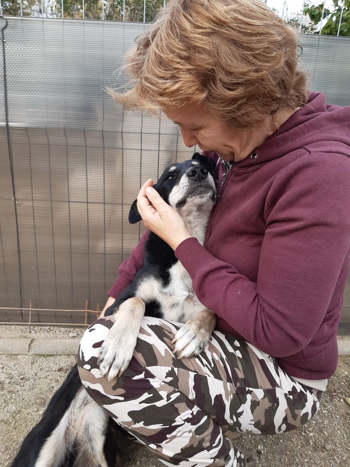 Tagsüber darf sie sich teils frei im Gelände bewegen und ist inzwischen Aniela’s Schatten geworden. Sie folgt ihr auf Schritt und Tritt und freut sich über Zuwendungen. Es tut KIRI einfach gut, nicht mehr im Kennel zu sitzen. Auch im Umgang mit anderen Hunden ist sie deutlich entspannter geworden und sucht von sich aus den Kontakt.