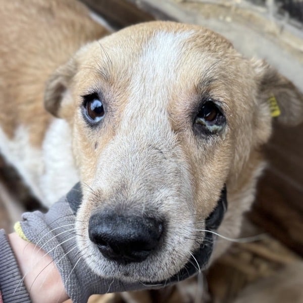 KLAUS haben wir bei unserem Besuch in der Hütte wiedergetroffen und er macht einen schlechten Eindruck auf uns. Er sieht müde und abgekämpft aus. In seinem Kennel zwischen den aktiven Hunden geht KLAUS unter. Sein linkes Auge ist aktuell entzündet und verklebt. Trotzdem war KLAUS neugierig auf uns, nahm gerne unsere Leckerlies und wir konnten ihn in der Hütte auch anfassen und streicheln. Er ist dabei zwar noch leicht unsicher, wir denken aber, dass KLAUS in einem eigenen Zuhause wahrscheinlich gut auftauen würde.