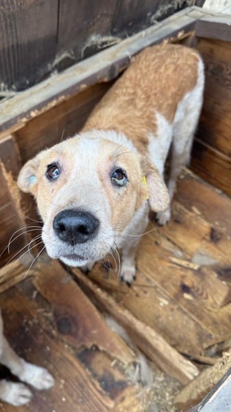 KLAUS ist ein Rüde, der uns Menschen noch nicht so richtig einschätzen kann. Er lag meist auf der Hütte und beobachtete uns interessiert. Unsere Leckerlie nahm KLAUS auch schon aus der Hand und ließ sich dabei auch schon vorsichtig anfassen. Zwei andere Rüden in seinem Kennel mag er nicht so, diese beiden werden von ihm reguliert. Mit den anderen Hunden im Zwinger zeigte er sich verträglich.