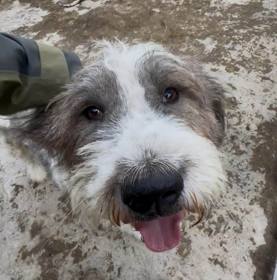 Bei unserem Besuch im Kennel war die Freude bei KUMBER riesengroß! Begeistert kam er auf uns zu und nahm voller Freude die Leckerlis aus der Hand. Seine offene, herzliche Art zeigte sofort, wie sehr er die Aufmerksamkeit und Zuwendung genießt. Leider ist sein Fell inzwischen wieder etwas filzig