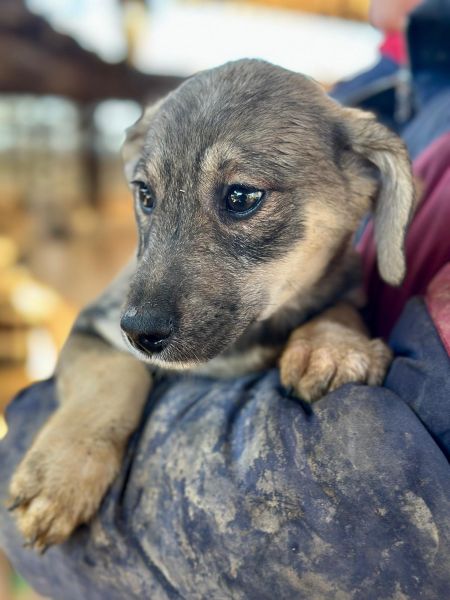 | Wesen & Zutraulichkeit (Character & Trustworthiness) | welpentypisch (typical for puppies), verspielt (playful), offen (open), freundlich (friendly), neugierig (curious), überall anfassbar (touchable everywhere) |