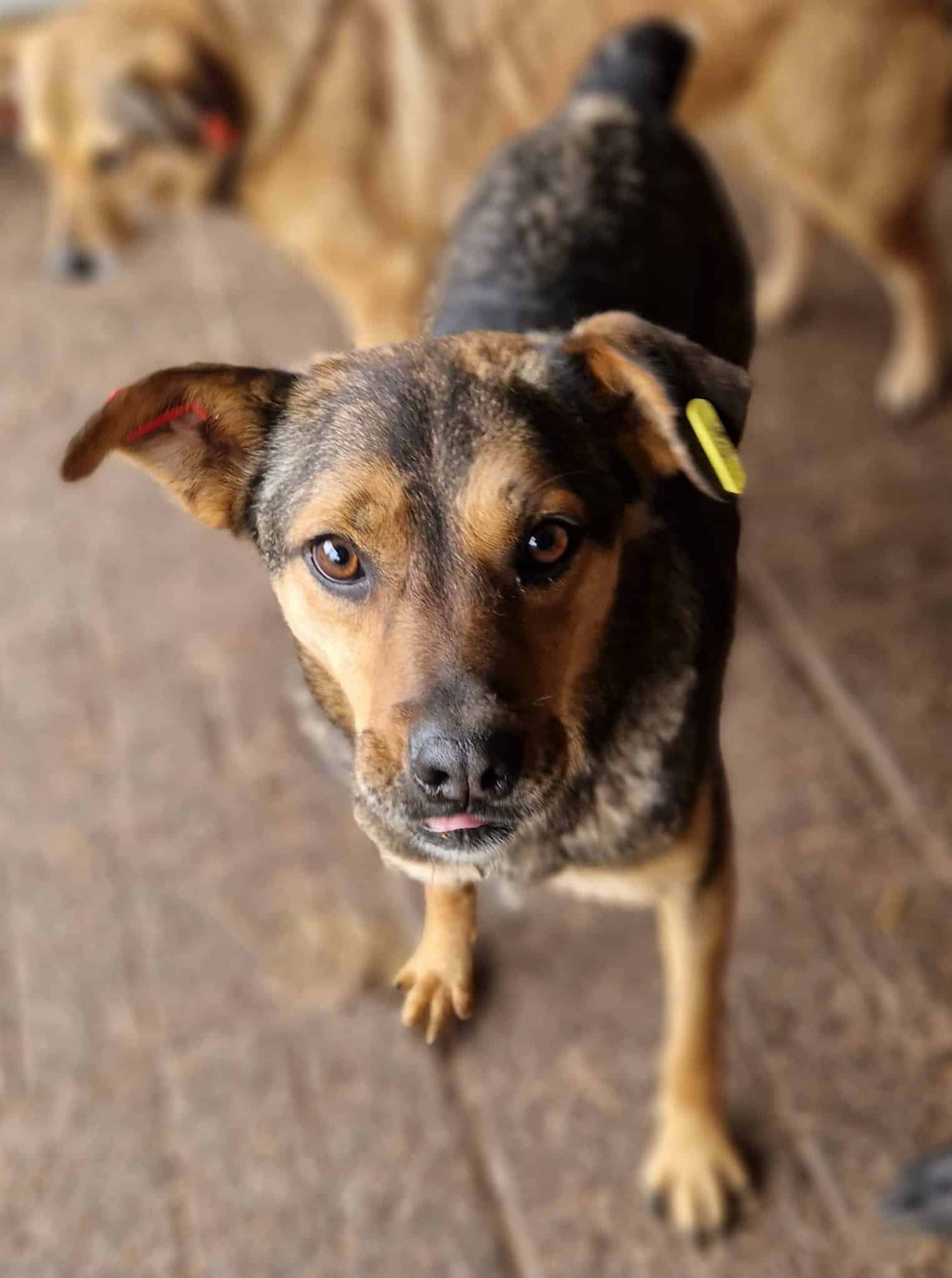 Unser süßer LAURENZ hat sich wieder sehr über unseren Besuch gefreut. Er lief von einem zum anderen, genoss die mitgebrachten Leckerlie besonders und sicherlich auch die Ablenkung vom tristen Shelteralltag. Da wedelte dann auch mal das ganze Hinterteil vor Begeisterung. Auch in der Hütte mit mehr Nähe zu uns und ohne Ausweichmöglichkeiten nahm er gutgelaunt unsere Leckerlie direkt aus der Hand. Wir durften ihn in der Hütte ein paar Mal vorsichtig berühren, er zeigt dann durch Beschwichtigungszeichen, dass er nicht noch mehr möchte. Wir denken, LAURENZ hat bisher einfach keine Erfahrung mit liebevollen Berührungen von Menschenhand machen dürfen. Uns zeigte er sonst seine freundliche Art und auch mit seinem gemischten Rudel scheint er friedlich zusammenzuleben. LAURENZ ist ein lustiger kleiner Knopf, der so viel Freude und Begeisterung zeigen kann und deshalb ist das Shelter für ihn wie für jeden Hund, der völlig falsche Ort. LAURENZ möchte endlich seine Menschen finden, die ihm geduldig und mit viel Liebe ein tolles Leben mit recht vielen Abenteuern bieten wollen. Ein freundlicher Ersthund wäre für den neugierigen Rüden eine tolle Unterstützung um anzukommen und er könnte sich abschauen, wie schön es sich in der Geborgenheit von Menschen leben lässt.