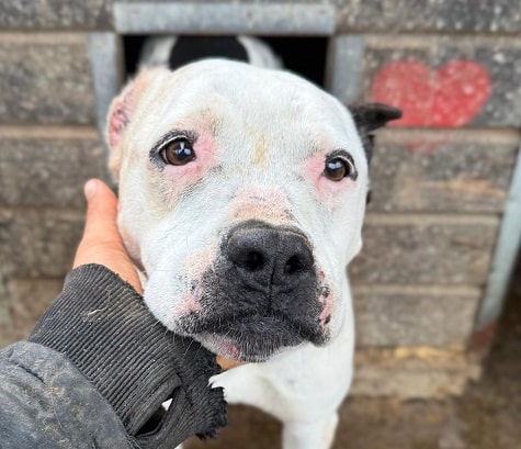 Laynie ist eine ganz tolle, menschenbezogene, verschmuste Hündin. Leider hat sie nach wie vor durch ihre Rasse und die kupierten Ohren keine Chance, ausreisen zu dürfen. Immerhin macht ihr die gute Freundschaft mit ihrem Leidensgenossen Knox den Shelteralltag etwas erträglicher. Danke an ihre Dauerpaten, die sie unterstützen und an sie denken!