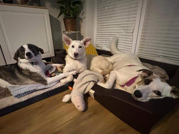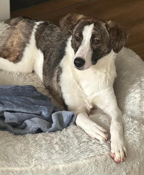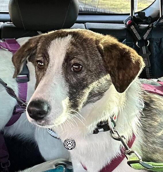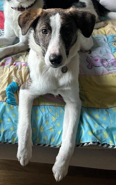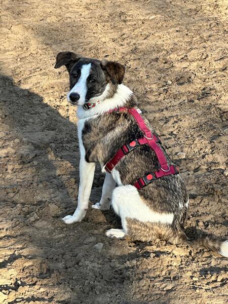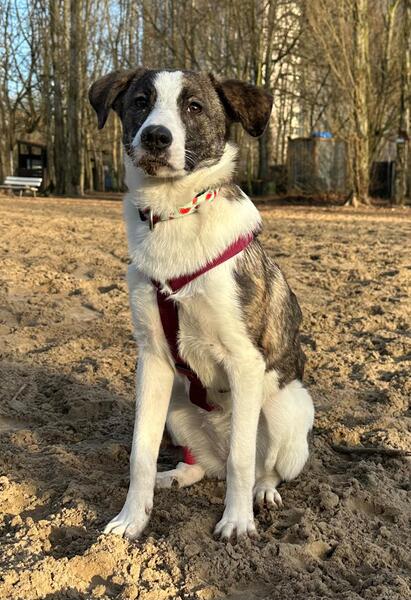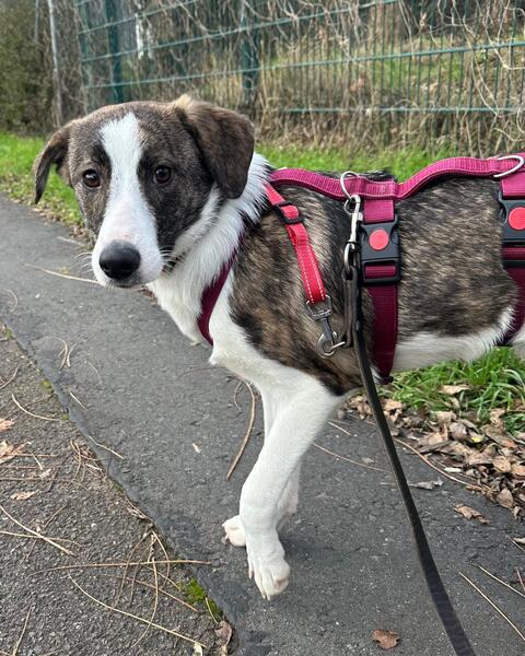Lelia ist seit Mitte Dezember bei uns auf Pflegestelle. Von Anfang an zeigt sie sich als sehr aufgeschlossene, menschenbezogene und neugierige junge Hündin. Mit den anderen Hunden auf der Pflegestelle versteht sie sich gut, auch wenn sie zwischendurch gern zeigt, dass sie ein starkes Mädchen ist und Spielzeug am liebsten für sich beansprucht. Im Hundepark ist sie mit allen Hunden sehr freundlich und findet durch ihre freundlich & offenen Art schnell Spielfreunde. An der Leine läuft Lelia bereits richtig toll und ist für die kurze Zeit schon erstaunlich souverän beim Spazierengehen unterwegs. Autofahren meistert sie entspannt – sie legt sich hin und schläft. An der Stubenreinheit wird aktuell noch geübt. Lelia wünscht sich eine aktive Familie, die gerne gemeinsam mit ihr die Welt erkundet und mit ihr eine Hundeschule besucht. Sie ist sehr clever und beginnt gerade, Signale neugierig zu hinterfragen.
