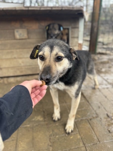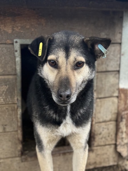 Der süße Lenny war interessiert an uns und holte sich neugierig Leckerchen aus der Hand ab. Dabei konnten wir ihn leicht an der Schnauze berühren. Für mehr fehlte ihm derzeit noch der Mut. Da er sich aber grundsätzlich interessiert am Kontakt mit dem Menschen und sehr neugierig zeigt, würde er mit etwas Geduld bestimmt auftauen. In seinem gemischten Kennel zeigte Lenny sich prima verträglich.
