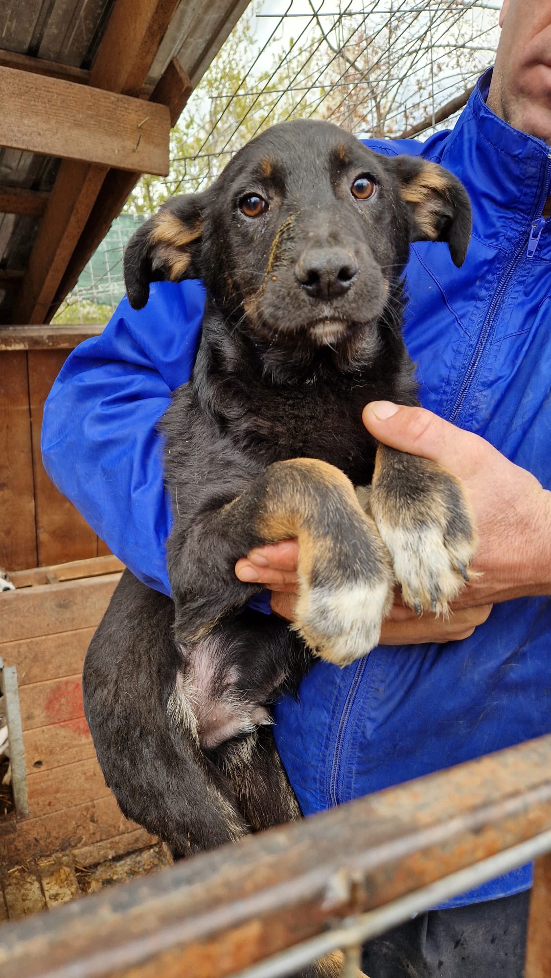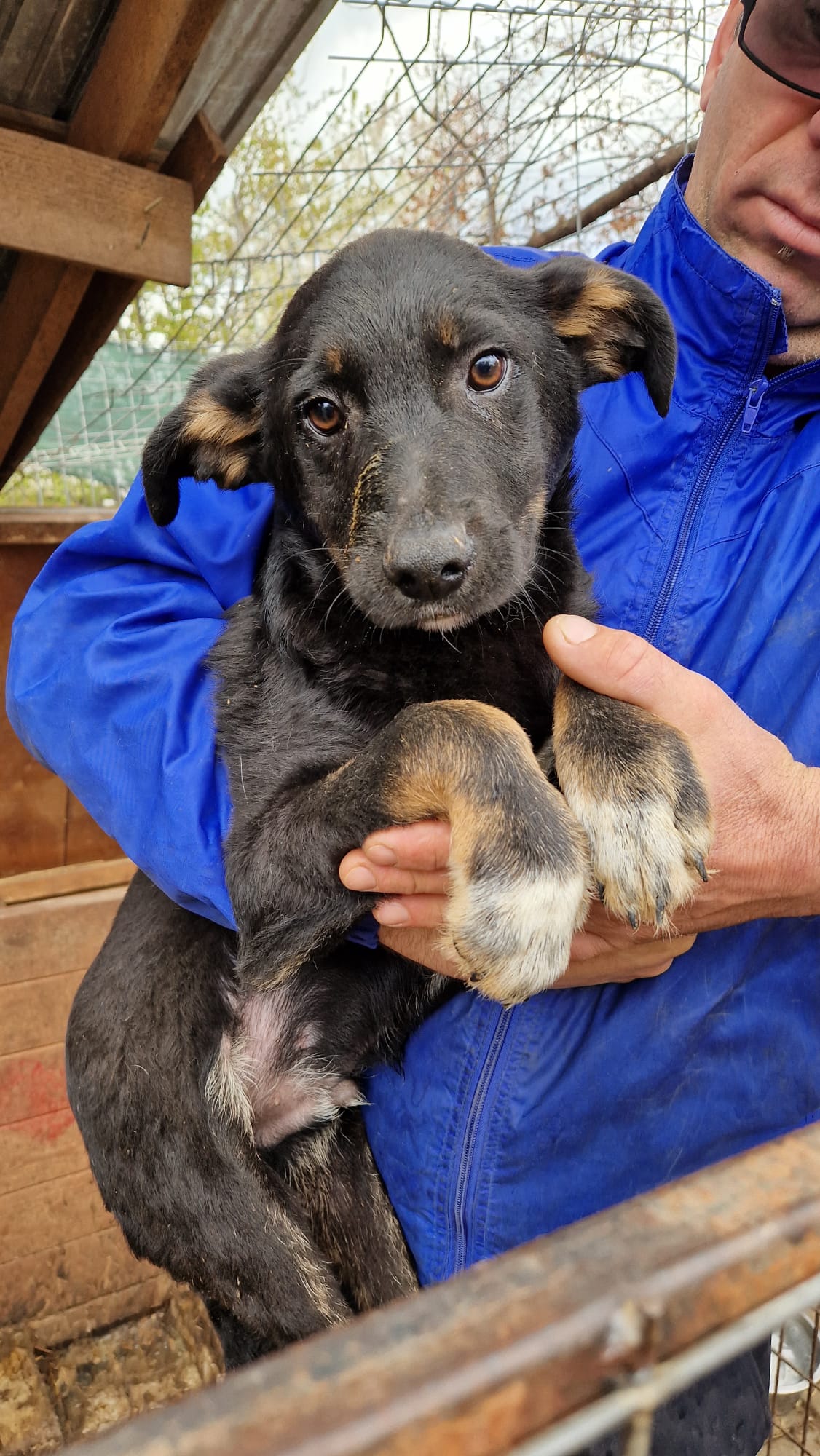 LEVY hatte keinen leichten Start ins Leben. Seine Mutter war freilaufend und er ist lange Zeit ohne Kontakt zu Menschen aufgewachsen. Er wurde nun mit seiner Schwester eingefangen und sitzt mit ihr zusammen in einem kleinen Kennel.