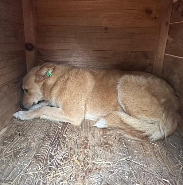Im Umgang mit ihren Artgenossen zeigt sie sich sehr verträglich. Sie lag oft eng in der Hütte mit ihnen zusammen – die Gemeinschaft scheint ihr etwas Sicherheit zu geben.