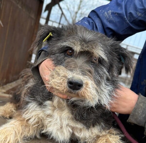 Liesbeth wartet nun schon seit drei langen Jahren im Shelter. Sie war wieder unsicher, ließ sich aber in der Hütte von uns problemlos anfassen und streicheln. Bei diesem Besuch waren ihre Verfilzungen noch schlimmer als schon in den letzten Jahren geworden, und so fassten wir uns ein Herz und schnitten Liesbeths Filzplatten notdürftig ab. Dazu konnten wir sie sogar problemlos auf das Hüttendach heben, anleinen und festhalten. Sie zeigte dabei keinerlei Abwehrverhalten. Eine freundliche Hündin, die nun hoffentlich endlich von den richtigen Menschen gesehen wird.