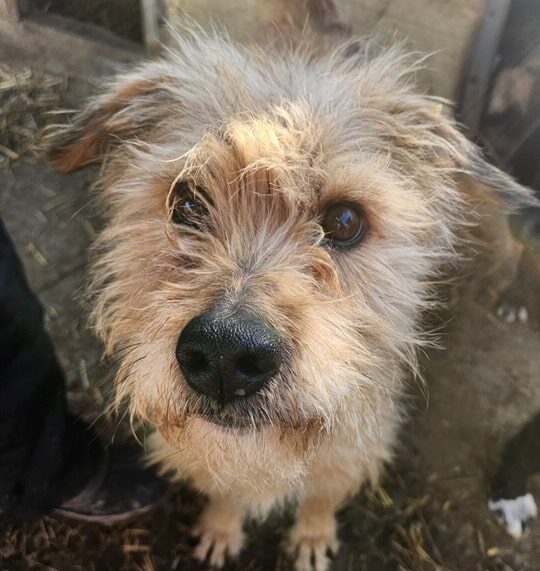 Die bezaubernde Lillie mit ihrer süßen Lakritznase und den Knopfaugen hat sich nach dem ersten Kennenlernen uns gegenüber geöffnet und zögerlich streicheln lassen. Leider fiel uns dabei aus, dass sie im Nacken weiterhin eine Verletzung (laut Tierärztin ein Tumor) hat und am hinteren rechten Knie vermutlich eine Art Geschwür aufweist. Die ärmste leidet außerdem aktuell unter Verdauungsproblemen und hat Durchfall. Sie ist eine absolut liebenswerte, in sich ruhende Wuschelmaus! Sie sollte dringend ausreisen dürfen, damit sie eine Chance auf ordentliche Ausheilung bekommt.