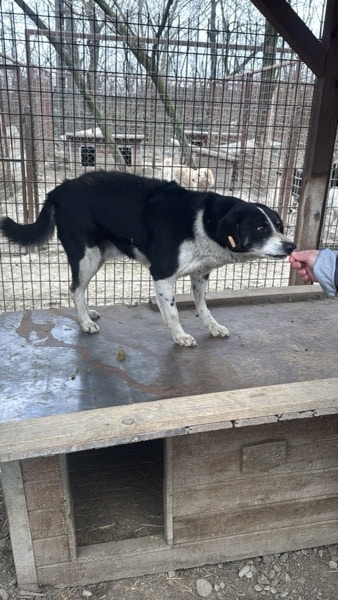 Liron ist nun schon seit mindestens sieben Jahren im Shelter – was für eine vertane Lebenszeit. Als wir den Kennel betraten, begrüßte er uns vom Hüttendach aus, das er jedoch nicht verlassen wollte. Er war freundlich, offen und neugierig und nahm Leckerchen aus der Hand. Zu mehr fehlte ihm noch der Mut.