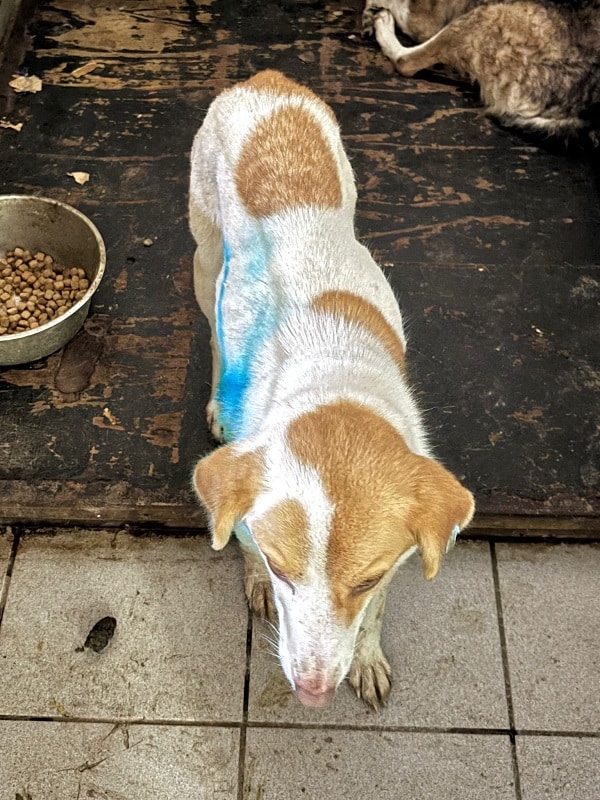 Unsere süße, zarte LIV ist leider zum Beissopfer geworden – Wir fanden sie abgemagert, nur noch mit halber Rute und einer großen Wunde an der Schulter im dunklen VetKennel vor. Da sie gerade erst dort hineingesetzt wurde, wollten wir sie nicht zusätzlich stressen und boten ihr nur ein paar Leckerlie durch das Gitter an. Diese nahm LIV sanft aus der Hand. Wir wünschen dem armen Mädchen, dass sie nun endlich gesehen wird und bei verständigen Menschen ankommen darf. Damit ihr kein Leid mehr geschieht und der Shelter nicht ihre Endstation sein muss… LIV möchte ihre Sorgen vergessen, heilen und endlich losleben. Ein netter Ersthund wäre dabei sicher eine große Stütze für die verträgliche Maus.
