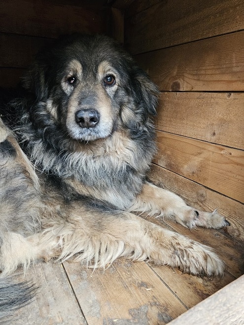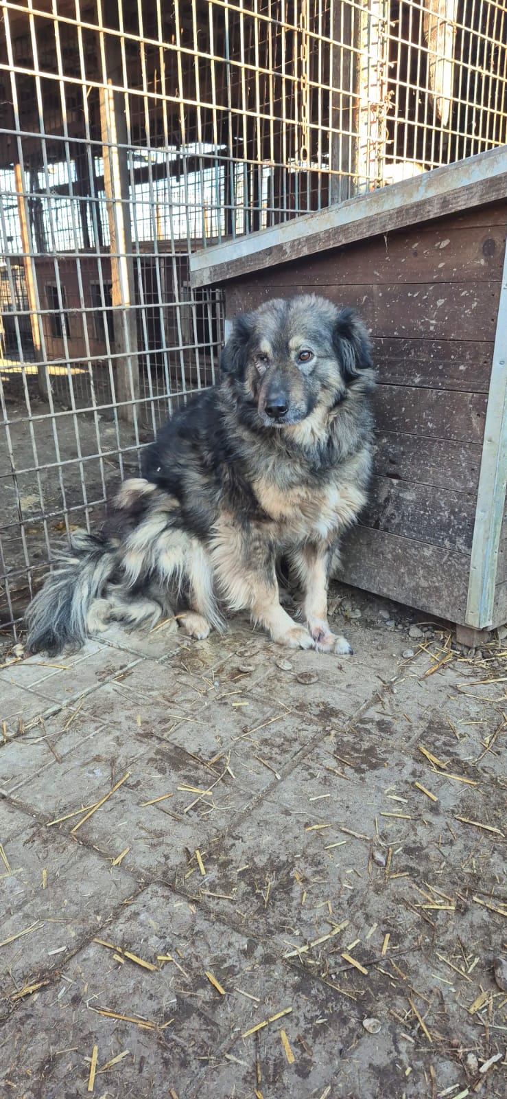 Dieser arme Schatz hat es im Shelter besonders schwer. Das viele, bereits verfilzte Fell wird bei Regen schnell nass und trocknet nur sehr langsam – gerade in der Kälte ist das eine zusätzliche Belastung. Dazu kommen Probleme am Auge und am Vorderlauf, die den ohnehin harten Shelteralltag noch beschwerlicher machen. Er/sie scheint noch keine Erfahrungen mit Menschen gemacht zu haben, weswegen er/sie uns wenn möglich immer auswich. Wir suchen daher ein verständiges Zuhause wo er/sie ganz in Ruhe ankommen darf.
