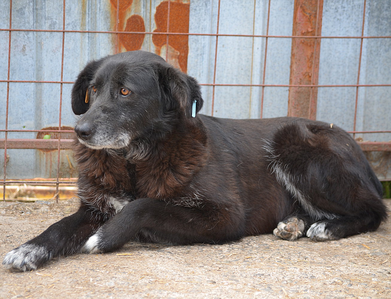 LOONA hat seit unserem letzten Besuch im Mai 2024 weiter stark abgebaut. Sie ist dünn geworden und hat kaum noch Muskulatur. Sie nahm wieder Leckerlis vom Boden, dabei wirkte sie müde und resigniert.