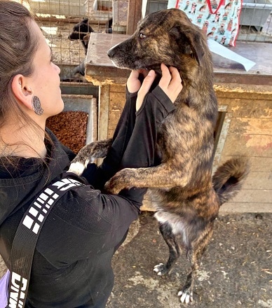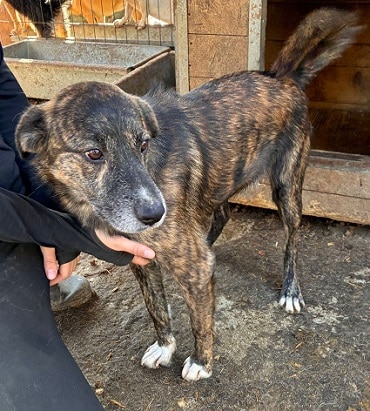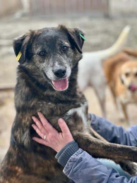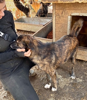Der freundliche Hundebub begrüßte uns gleich ganz freundlich als zweiter Hund nach dem Sheriff im Kennel. Er genoss unsere Aufmerksamkeit, wollte am liebsten in uns hinein kriechen. Zu selten die Momente, wo ein Mensch Zeit für ihn hat; er saugt es auf, ein glücklicher Moment für ihn.