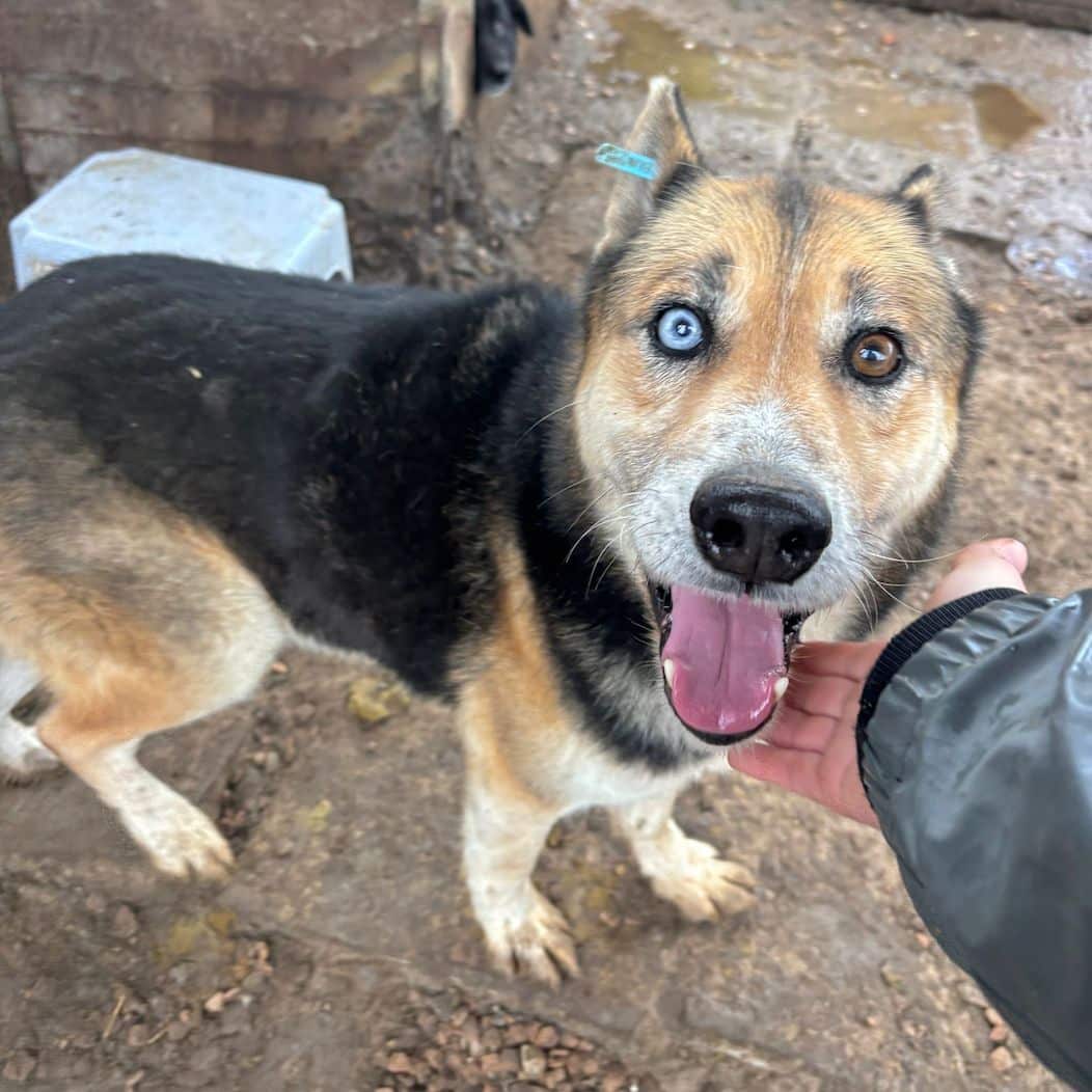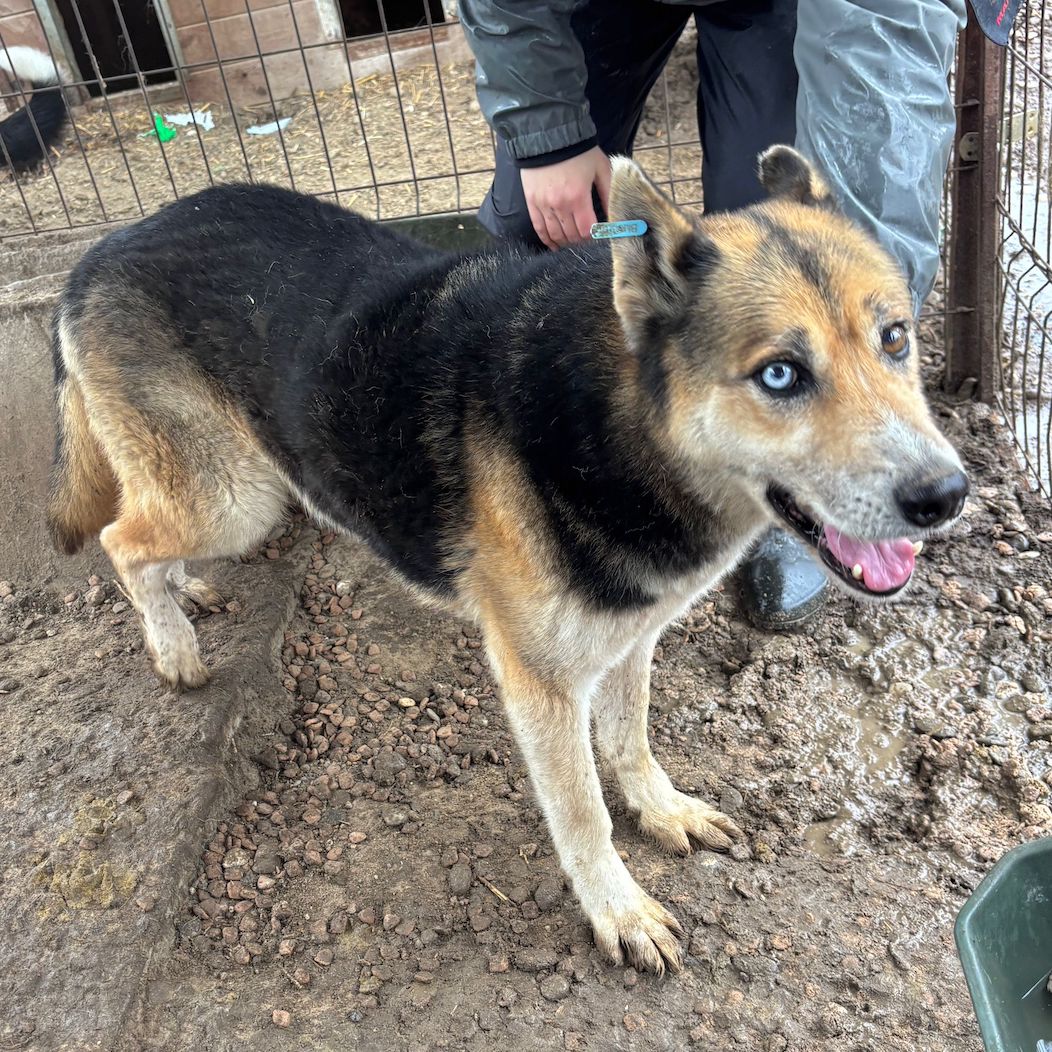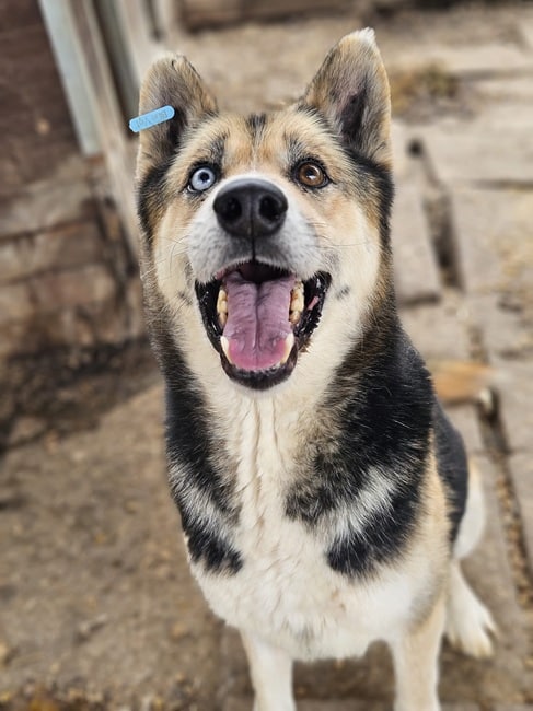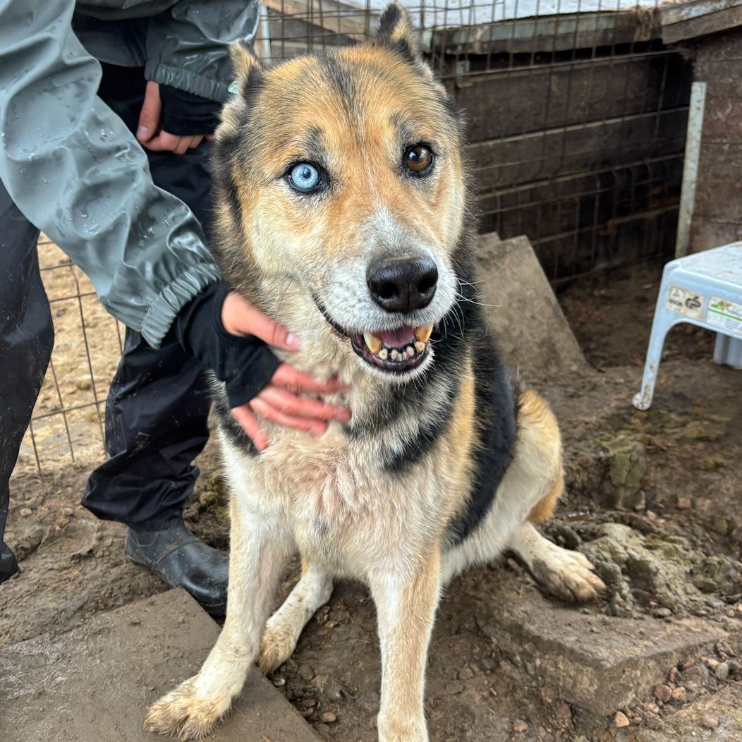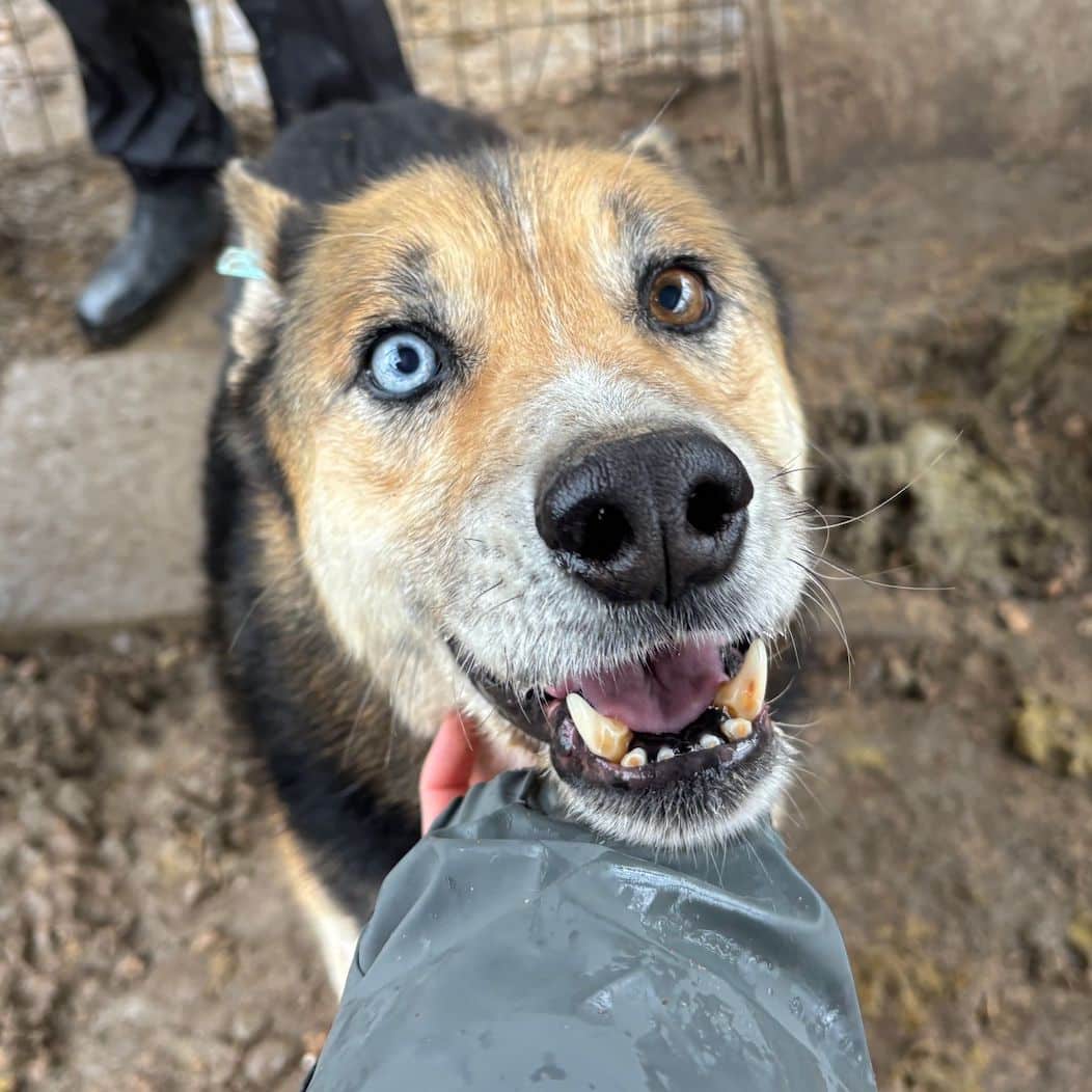 LUM ist ein super freundlicher, offener Rüde. Er ist sehr kontaktfreudig und fand unsere Leckerlie super. Seine beiden stechenden, verschiedenen Augen, ziehen einen in seinen Bann.