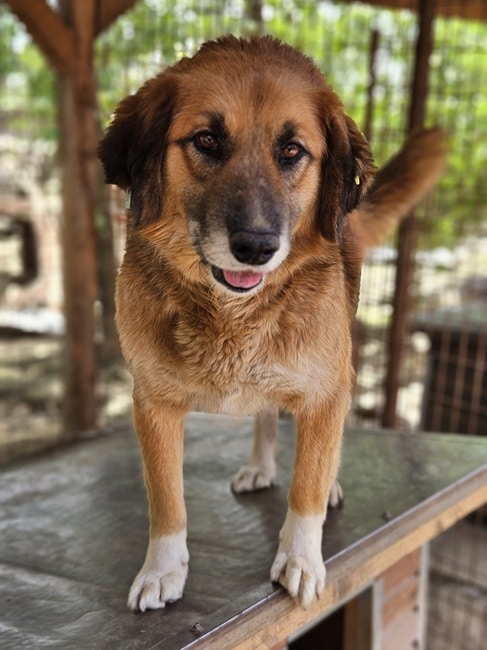 Ein Jahr ist vergangen, und für Lupinda hat sich nichts verändert. Wie schon in den Jahren zuvor empfing sie uns in ihrem Kennel auf dem Hüttendach. Sie war neugierig, freundlich, aber noch zurückhaltend. Leckerchen nahm sie nur vom Hüttendach. Anfassen konnten wir sie nicht – dazu fehlt ihr noch der Mut. Wo sind Lupindas Menschen, die ihr zeigen, wie schön die Welt sein kann?