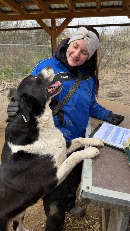 LYSCIEN zeigte sich uns gegenüber wieder als ganz toller Hund. Er hat natürlich Power und eine stattliche Größe, wir haben ihn aber nicht als übermäßig distanzlos oder aufdringlich erlebt. Er hat sich über uns gefreut, ist sehr menschenbezogen und hat sich super gerne und überall anfassen lassen, aber nach einer kurzen Zeit in seinem Kennel hat LYSCIEN sich auch schnell beruhigt. Mit der Hündin in seinem Kennel (Tikva) kommt er sehr gut zurecht. LYSCIEN hat sich sogar auf den Rücken gedreht, um sich streicheln zu lassen. Leider ist er aktuell zu dick.