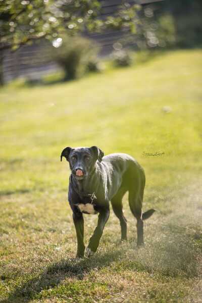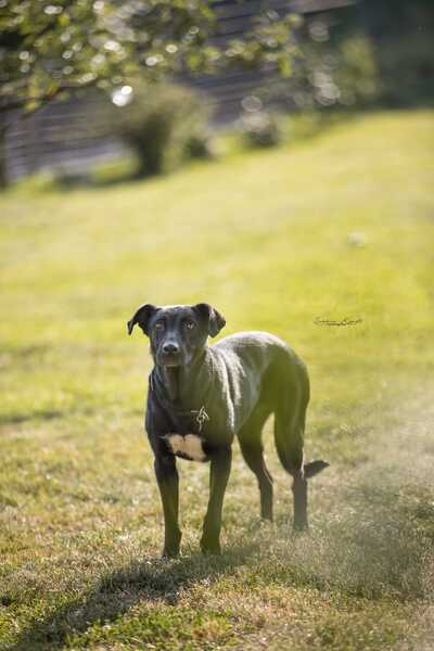 Verschiedene Umwelteinflüsse verunsichern sie allerdings ab und an noch, so dass beim Spazierengehen draußen weiterhin das Sicherheitsgeschirr und doppelte Sicherung im Einsatz ist. Fühlt sie sich draußen wohl (bekannte Wege/keine fremden Personen), sieht man Macy ihre Lebensfreude bei jedem Spaziergang von weitem an. Das Näschen wird hoch in den Wind gestreckt, das Schwänzchen wedelt und auf jeder passenden Wiesenfläche vollführt sie ausgiebige Freudenpurzelbäume und wälzt sich genüsslich im Gras hin und her, so dass man sich allein beim Zuschauen nicht dagegen wehren kann, sich von dieser Lebensfreude anstecken zu lassen. Mit anderen Hunden verträgt sie sich gut. Katzenverträglichkeit noch nicht getestet.
