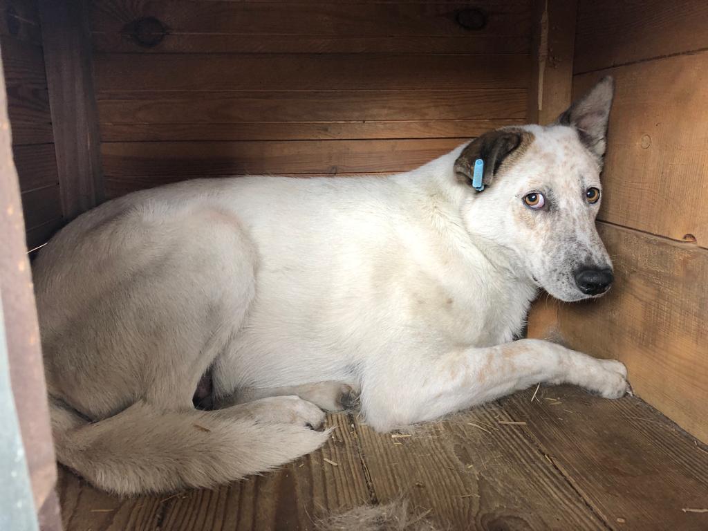 Magnus hielt sich die ganze Zeit in der Hütte auf. Unter leichter Bedrängung konnten wir ihn dort gut streicheln. Genießen konnte er es nicht, aber er kennt es auch nicht. Ein ganz lieber Rüde! Wir denken, dass er in anderer Umgebung mit Eingewöhnungszeit auftauen würde.