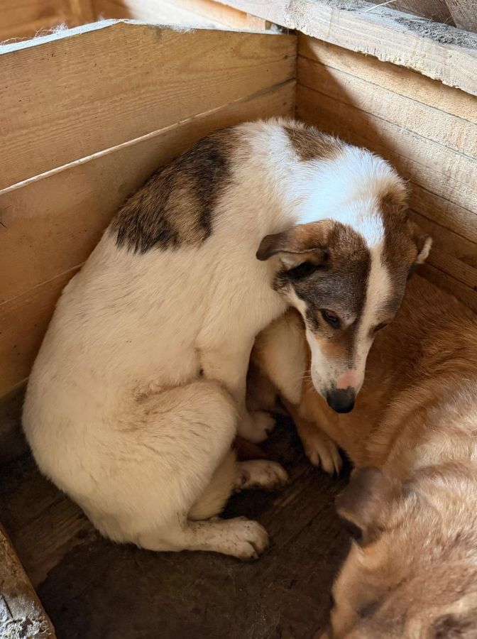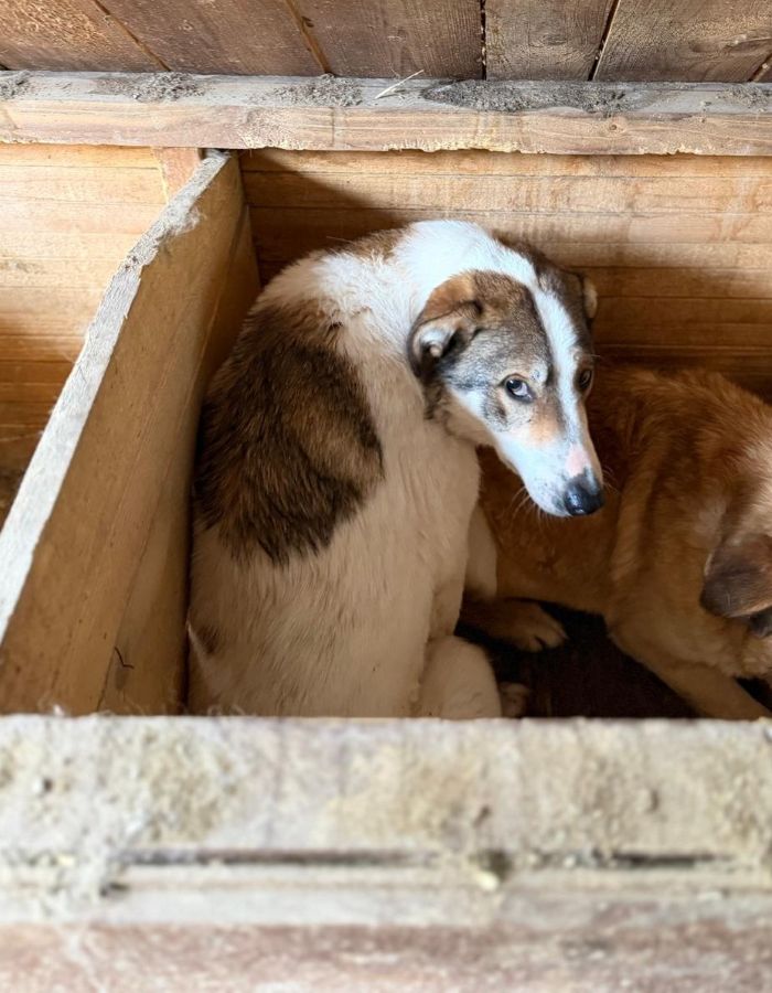 MAGS hat sich zurückgezogen. Er wirkt wie ein Hund, der sich ein Stück weit aufgegeben hat. MAGS hält sich meist in seiner Hütte auf, zieht sich zurück und wartet einfach ab, was der Tag bringt. Er ist unsicher, aber anfassbar. Er zeigt kein Abwehrverhalten, sondern eher Rückzug, als hätte er gelernt, dass es besser ist, sich nicht in den Vordergrund zu drängen. Im Shelter geht er damit natürlich völlig unter. Zu laut, zu hektisch, zu wenig Raum für Hunde wie ihn. Dabei ist MGAS verträglich mit anderen Hunden und würde sehr von einem souveränen, entspannten Ersthund profitieren, an dem er sich orientieren kann.