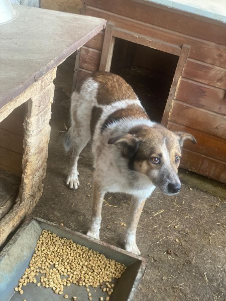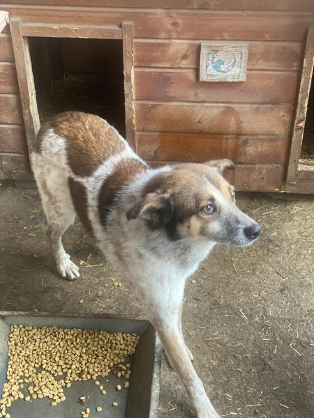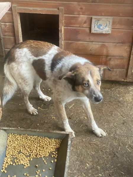 Die hübsche Mahalia blieb lieber im Hintergrund, beobachtete uns aber neugierig und nahm die angebotenen Leckerchen mit etwas Abstand vom Boden auf. Sie kam immer wieder mal etwas vor, bei Annäherung wich sie jedoch zurück. Mahalias Blick war uns gegenüber sorgenvoll, es schien als ob sie gerne mehr Kontakt mit uns aufnehmen wollte, sich aber noch nicht so recht traute. Als wir den Kennel wieder verlassen hatten, beobachteten wir ein freies soziales Spiel mit einem Rüden in ihrem Kennel.