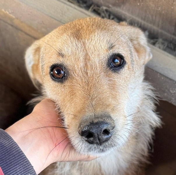 MAITI hat uns zum Schmunzeln gebracht. Sie war etwas unsicher im direkten Kontakt mit uns, aber neugierig genug, um uns aus nächster Nähe zu beobachten. Hierfür kroch sie direkt neben uns unter einen Wagen. So konnte sie uns in Ruhe zuschauen, was wir in ihrem Kennel so machen, ohne von den anderen Junghunden überrannt zu werden. Unter diesem Wagen, der ihr sicherlich auch Schutz gab, konnten wir MAITI vorsichtig am Kopf streicheln und sie nahm gerne unsere Leckerchen. Man merkt ihr aber an, dass sie den Kontakt mit Menschen nicht kennt. Woher auch? MAITI sollte jetzt zeitnah ausreisen, damit sich ihre Unsicherheit nicht verstärkt. Ein netter Ersthund würde ihr bei der Eingewöhnung sicher helfen. MAITI sitzt mit 13 weiteren Junghunden in einem Kennel und war verträglich.
